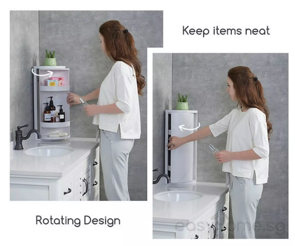 Corner Storage Rotating Cabinet Roger's favorite bathroom hack. Stock Status: 2 pcs Delivery Status: Pickup Only Recommended Price: S$45 S$45 S$25 Excluding Tax Description S$25/piece.Availability1H May 2022