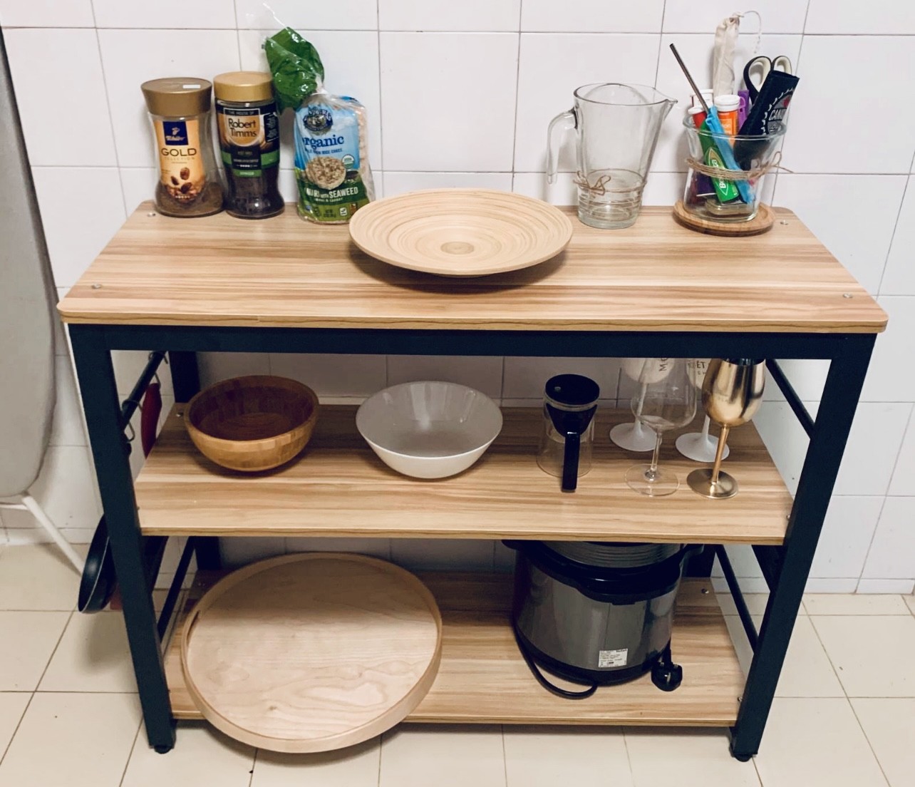 Kitchen island / Kitchen storage shelving Can be used for other shelving (Less than one year) Stock Status: Sold! Recommended Price: S$110 S$110 S$75 Excluding Tax This item is currently out of stock and can not be purchased. Description Measurements - 100x40x80cmEasy to cleanStable and durable supportThick board which has strong weight load capacity
